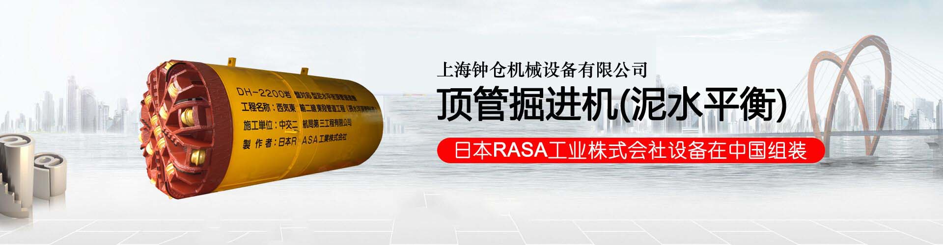 上海钟仓机械设备有限公司成立于1999年,是一家专业销售日本工程机械的技术型公司,中国非开挖技术协会的注册会员。本公司是日本RASA工业株式会社﹑ 株式会社日本前田制作所﹑株式会社日本三井三池制作所的中国总代理。主要经营日本RASA进口顶管掘进机、日本前田制作所的蜘蛛吊、小型履带起重机,起重量从1吨-8吨。另外提供顶管掘进机和配套设备的生产、租赁﹑维修等服务。